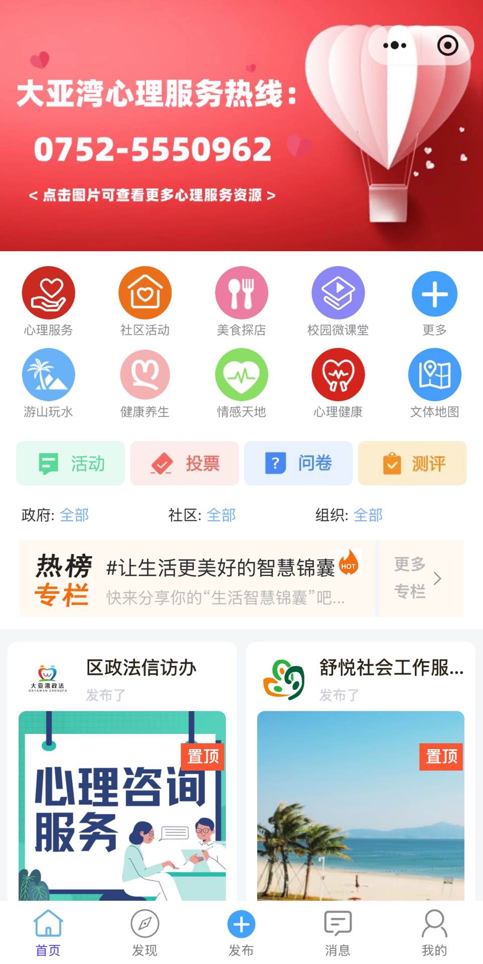 第二步 点击“大亚湾心理服务热线”轮播图